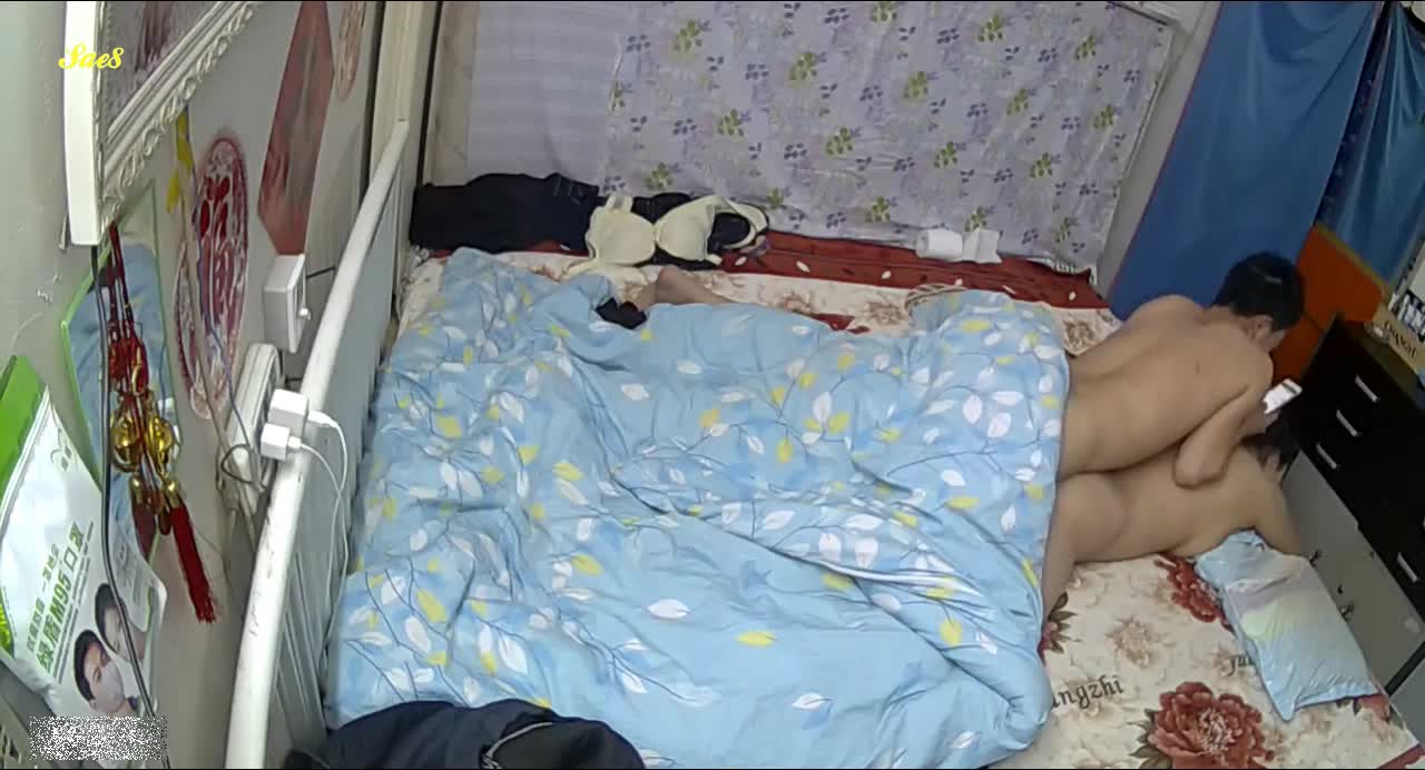 家庭摄像头云盘泄密八字奶新婚少妇和老公睡前运动玩的花。